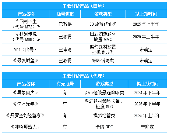 公司储备多款新品,,,,期待为玩家解锁更多新鲜体验,,,部分产品如下表所示::