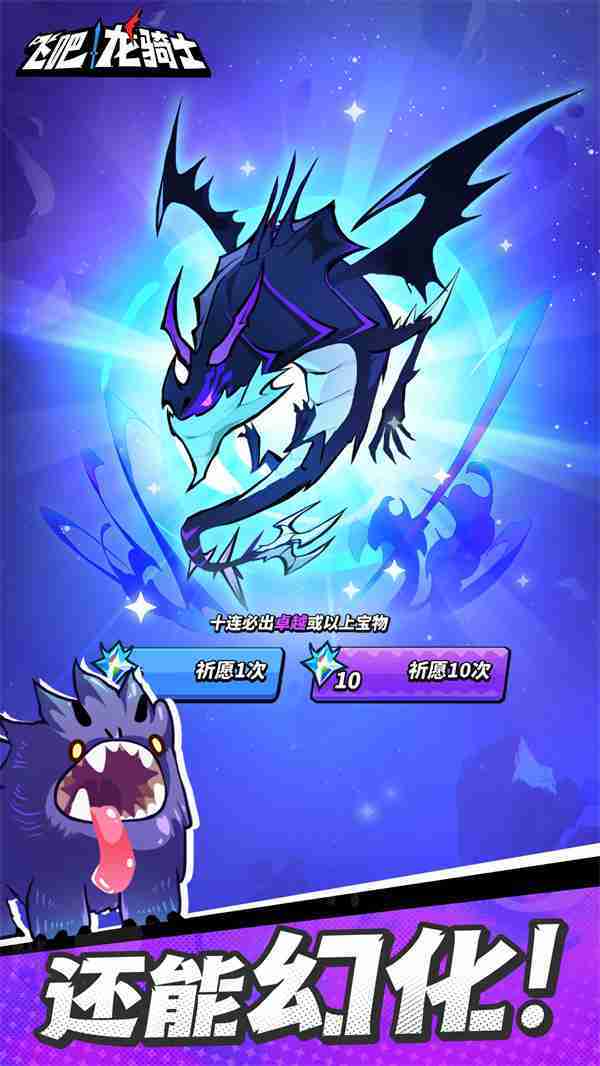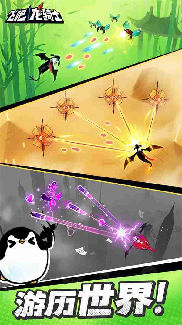 《飞吧龙骑士》是一款集合了飞行弹幕射击、、、、Roguelike要素和挂机养成的休闲手游,,极具创意的吞食子弹反击玩法,,,,突破传统飞行射击的刻板限制,,带来了独特的爽快清屏体验。。。。