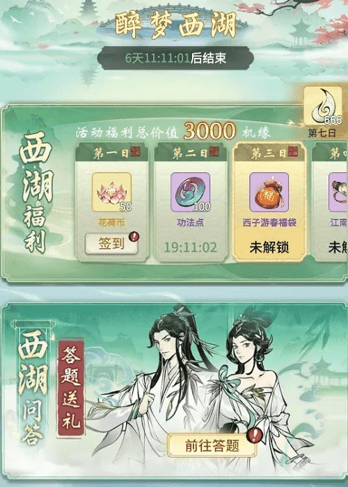 烟雨江南,,西湖三月,,,,宛若人间仙境,,,正是如此,,,修真界方才与之连通,,,共享两处风光。。。。此番《一念逍遥》联动西湖景区,,西湖十景被“搬”进游戏中,,仙友在游春过程中,,即可观赏到西湖奇景。。。每日前往签到、、、、参与游湖活动、、进行莲鲤祈愿,,皆可获得奖励馈赠,,,在这烂漫春日里,,,赏景、、修行两不相误。。。。